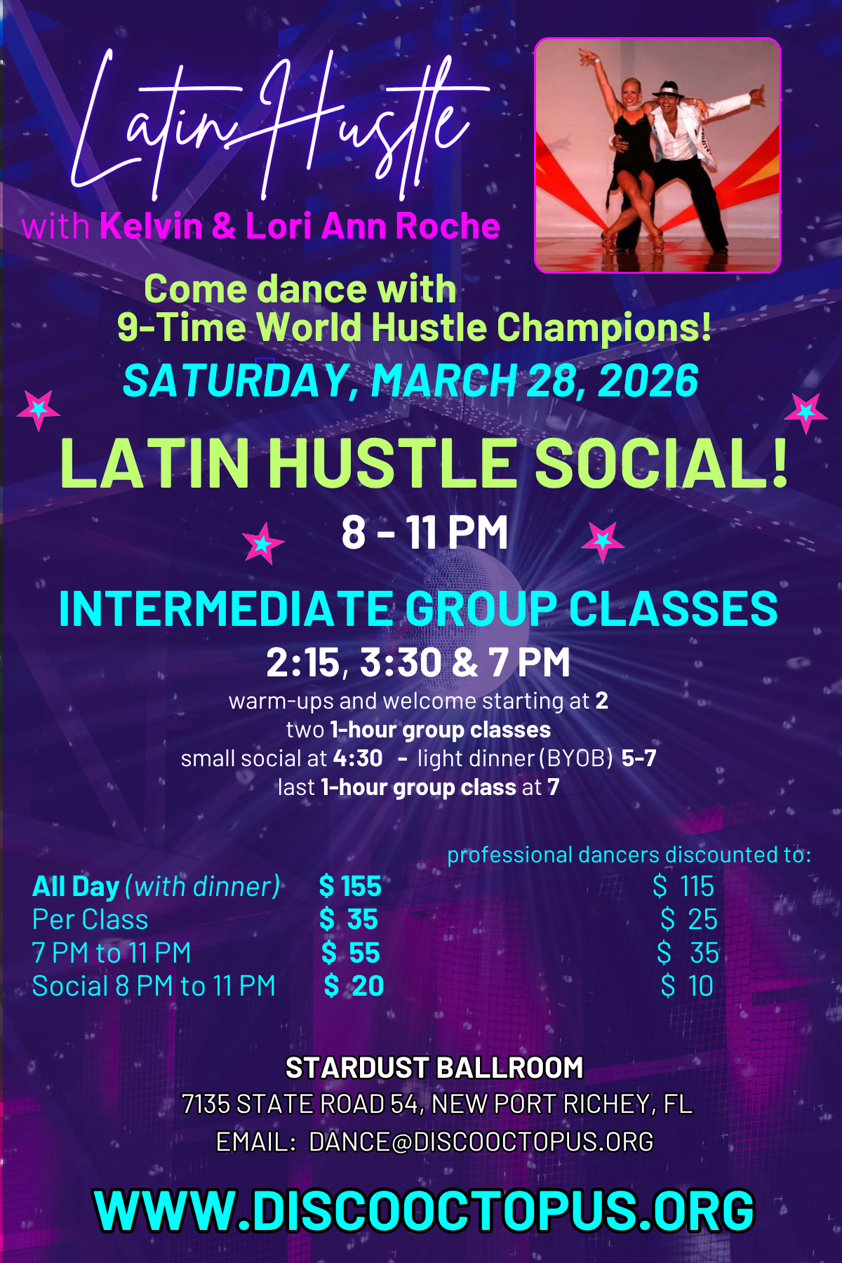 Are you looking for an introductory lesson? Want to work on your hustle before Lori Ann and Kelvin get here? You can find a latin hustle teacher at any of these amazing FL dance studios near you, call today!